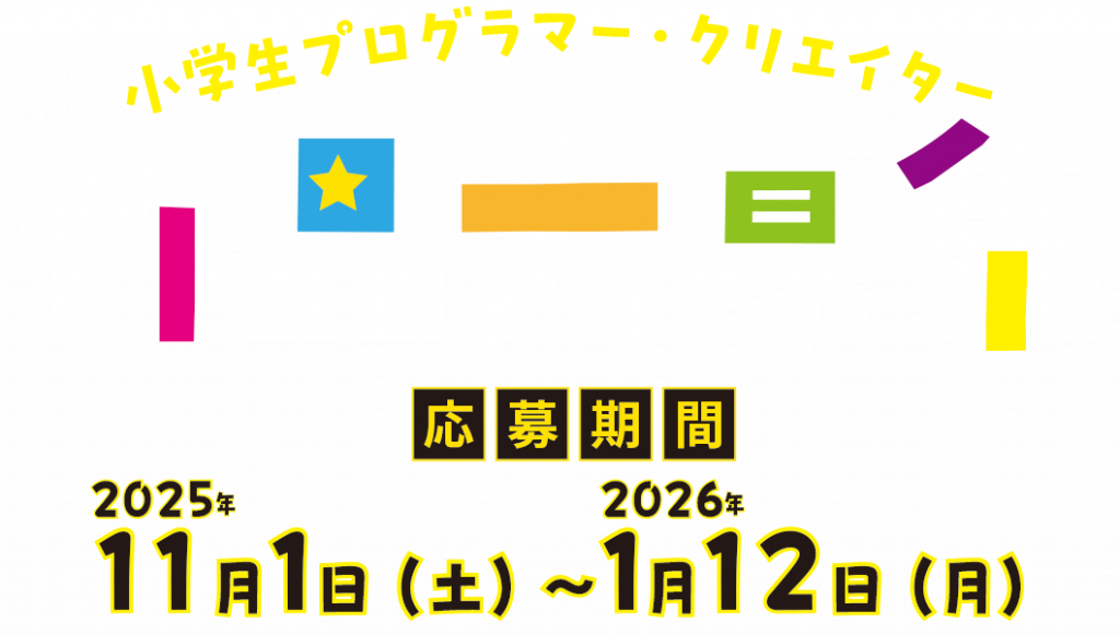 テーマやジャンルは自由。自分でつくったゲーム、デジタルアート、電子工作、ロボット、アプリなど、どんな作品でもOKです。